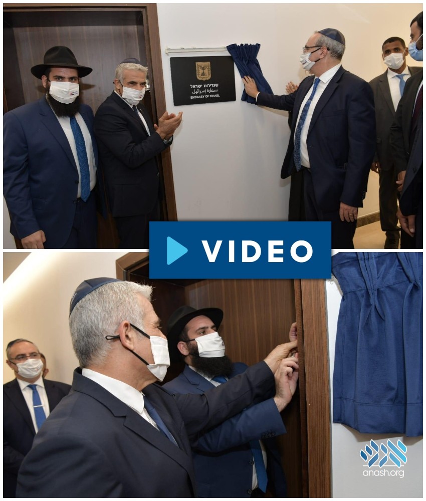 Israeli Foreign Minister Yair Lapid inaugurated the country’s new embassy in the United Arab Emirates Tuesday afternoon, in a ceremony in the UAE capital city of Abu Dhabi with shliach Rabbi Levi Duchman.