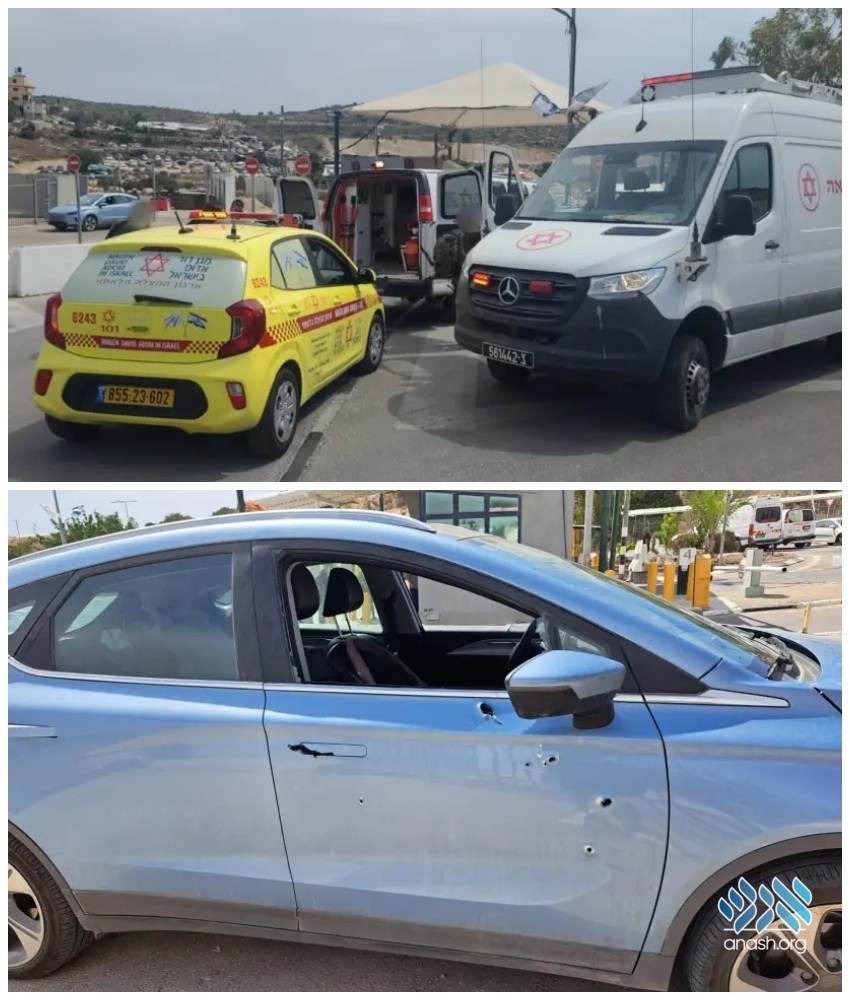 The terrorists fired at a man in his 30s, moderately wounding him, before driving further down the road and shooting three additional Israelis and wounding them moderately.