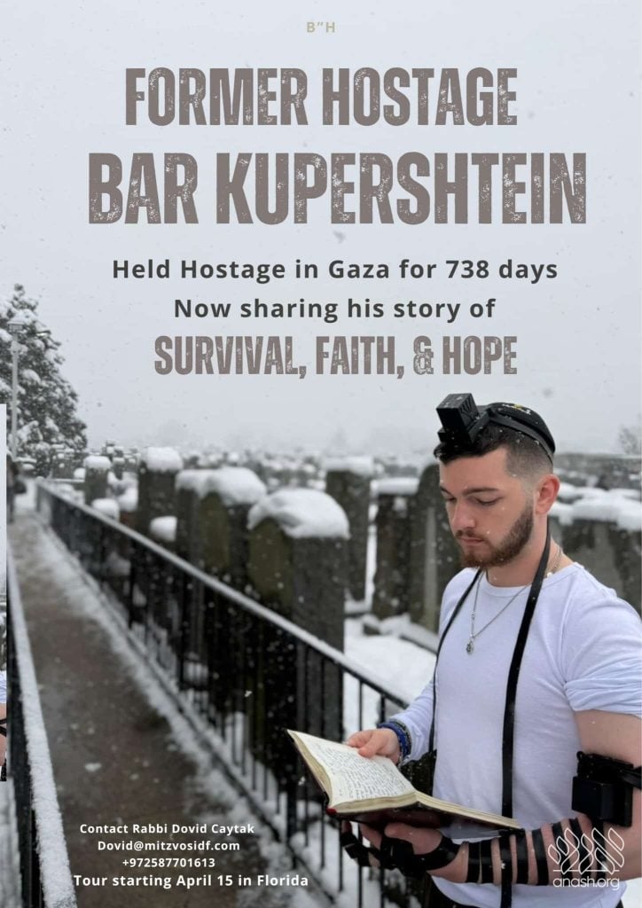 On a journey from darkness to light, recently freed hostage Bar Kupershtein will be visiting communities across the United States, sharing his remarkable story of survival, emunah, and renewal after spending 738 days in captivity.