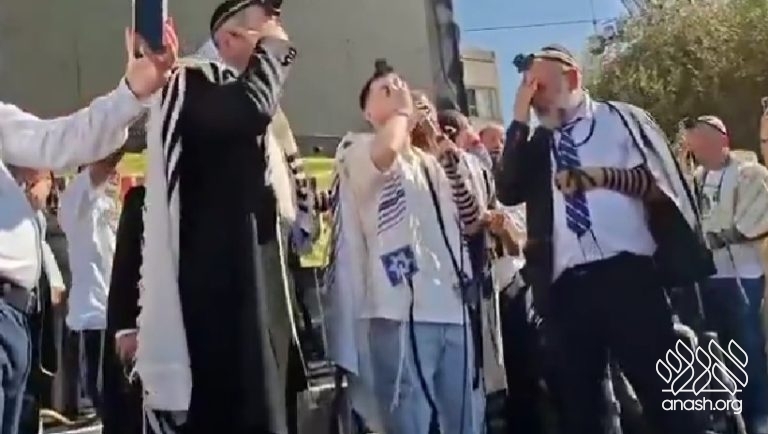 Freed Hostage Leads Mass Tefillin in the Heart of Tel Aviv