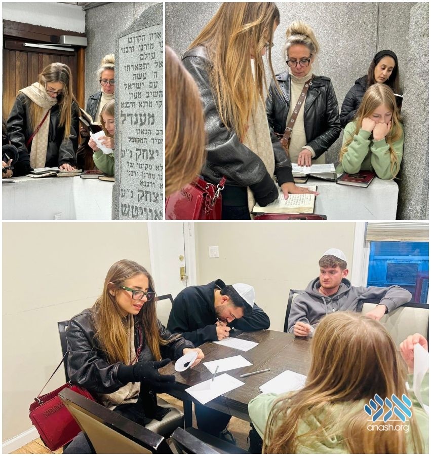 Former Israeli hostage Mia Schem and her family visited the Ohel on Monday evening together with Shlucha in Stony Brook NY Chaya Grossbaum and two soldiers who just came out of serving in Gaza.