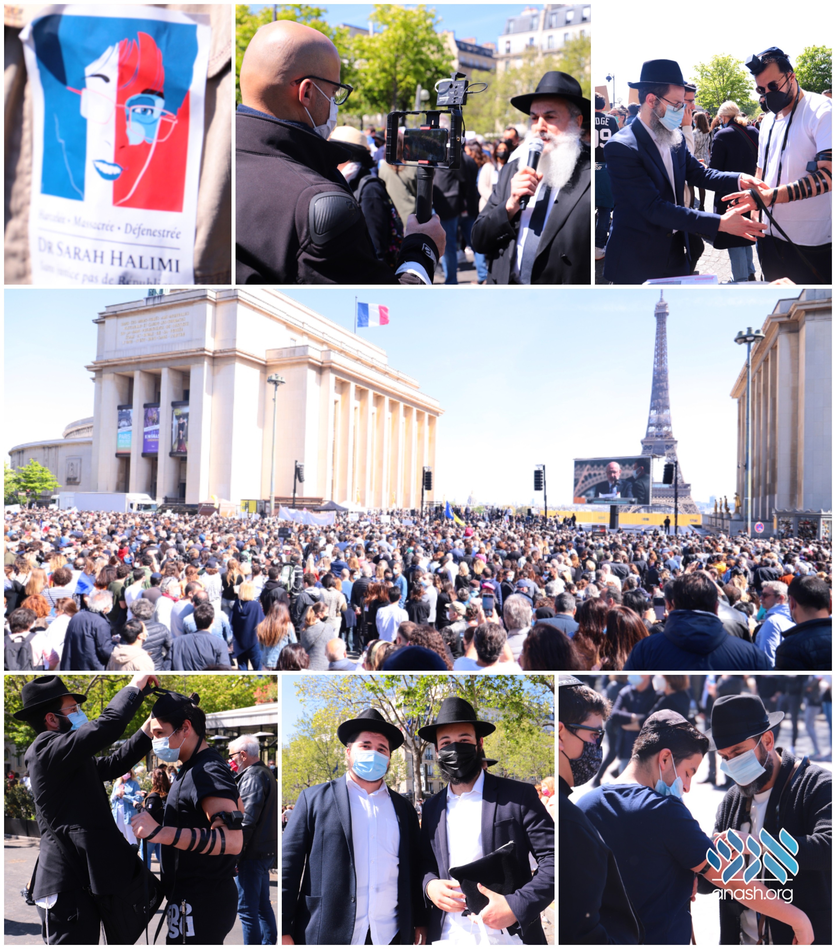 Thousands of Parisians gathered at the foot of the Eiffel Tower to protest the acquittal of the murderer of Sara Halimi, a French Jewish women. Lubavitchers were on the scene with tefillin and Shabbos candles.