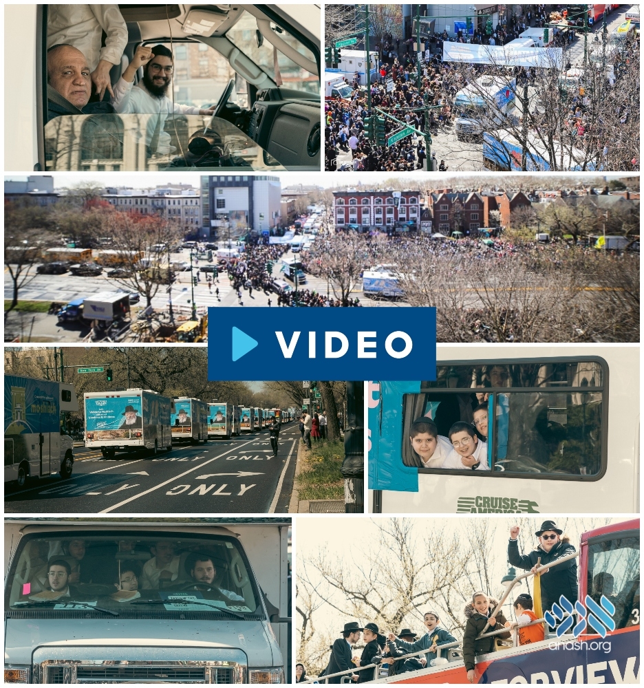 Beginning in Crown Heights, the parade kicked off by passing by 770, where hundreds of children had gathered for a Yud Alef Nissan rally, and hundreds more had gathered to see off the parade.