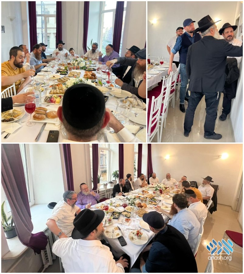 Farbrenging were shluchim Rabbi Mendel Pewzner, the Chief Rabbi of St. Petersburg, Rabbi Shmuel Mendelson, a shliach in central St. Petersburg, and Rabbi Ifrah Abramov, the shliach to the prison system where the Frierdiker Rebbe was held. They were welcomed by the apartment’s owner Mr. Julien Cohen.