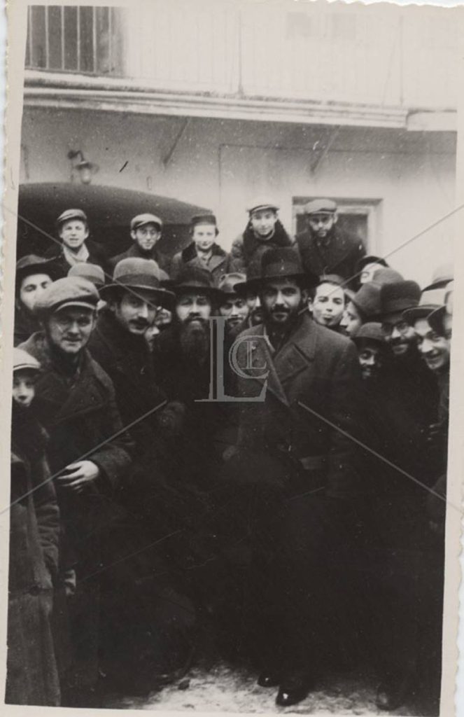 Rabbi Yitzchok Dovber Ushpol can be seen to the right of Rabbi Zalmanov. The three of them can be see in the center of next picture as well