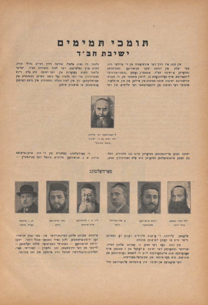 Our next article, from the Neiyer Folksblat Newspaper of Lodz (December 26, 1929) describes the celebration of Yud-Tes Kislev in the Chabad yeshivah in Lodz, Poland. At the center of this farbrengen is Harav Zalman Schneerson, a descendant of the Alter Rebbe and famous chasid of the Rebbe Rashab.