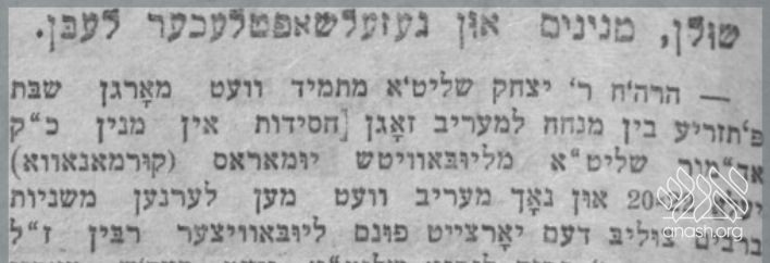 Surprisingly, the writer of this article understood R. Itche’s unique personality quite well and did a good job conveying it to the readers. The Frierdiker Rebbe’s mazkir, R. Chatche Feigin, was so impressed by the article that he wrote to R. Yisrael Jacobson in America that he should try to get this article reprinted in the American Jewish press. Preparations were underway at this time for R. Itche to embark on what became a two-year visit to America, so R. Chatche was eager to introduce R. Itche to the American public (Yiras Hashem Otzro, p. 164).
