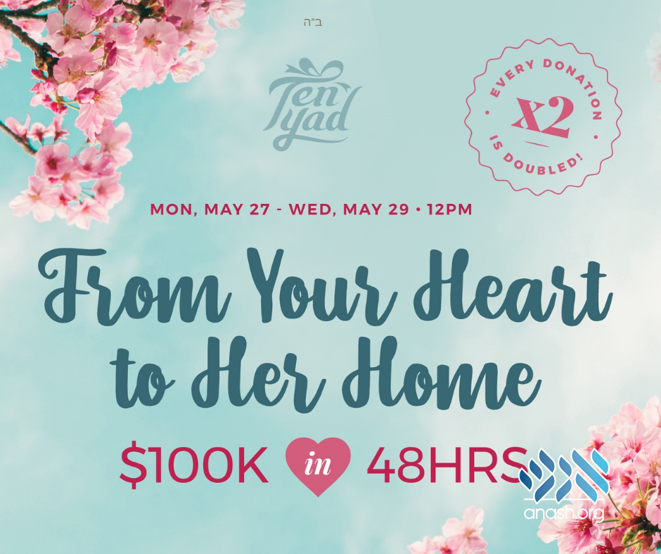 Until Wednesday at 12pm, every donation to Ten Yad gets DOUBLED thanks to our generous matchers. Join the campaign by giving what you can, and receive your share in this awe-inspiring mitzvah of Hachnosos Kallah.