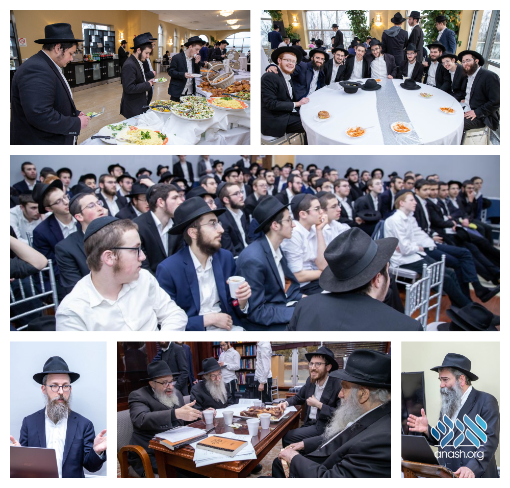 The day began with the test, a written quiz on the hundreds of pages of sichos they had learned over the past months. The test was followed by a sumptuous lunch, with a beautiful buffet spread. During the meal, groups of bochurim were seen in heated discussions, debating a point in a sichos or looking for a he’oro they may have missed.