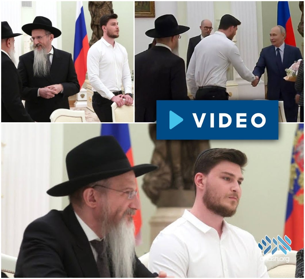 Alexander Trufanov, the Gaza hostage from Russia, who is a guest of the Moscow Jewish Community for Pesach, met with Russia’s President Putin, accompanied by Russia’s Chief Rabbi Berel Lazar, and President of the Union of Communities in Russia, Rabbi Alexander Barda.