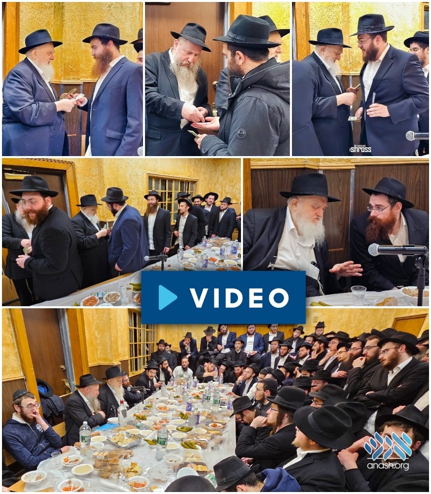 At the conclusion of the farbrengen, Rabbi Shlomo Zarchi and Rabbi Kuti Feldman distributed Chanuka gelt to all the Bochurim studying in central Tomchei Temimim 770, as was the Rebbe’s directive to members of Hanhala.