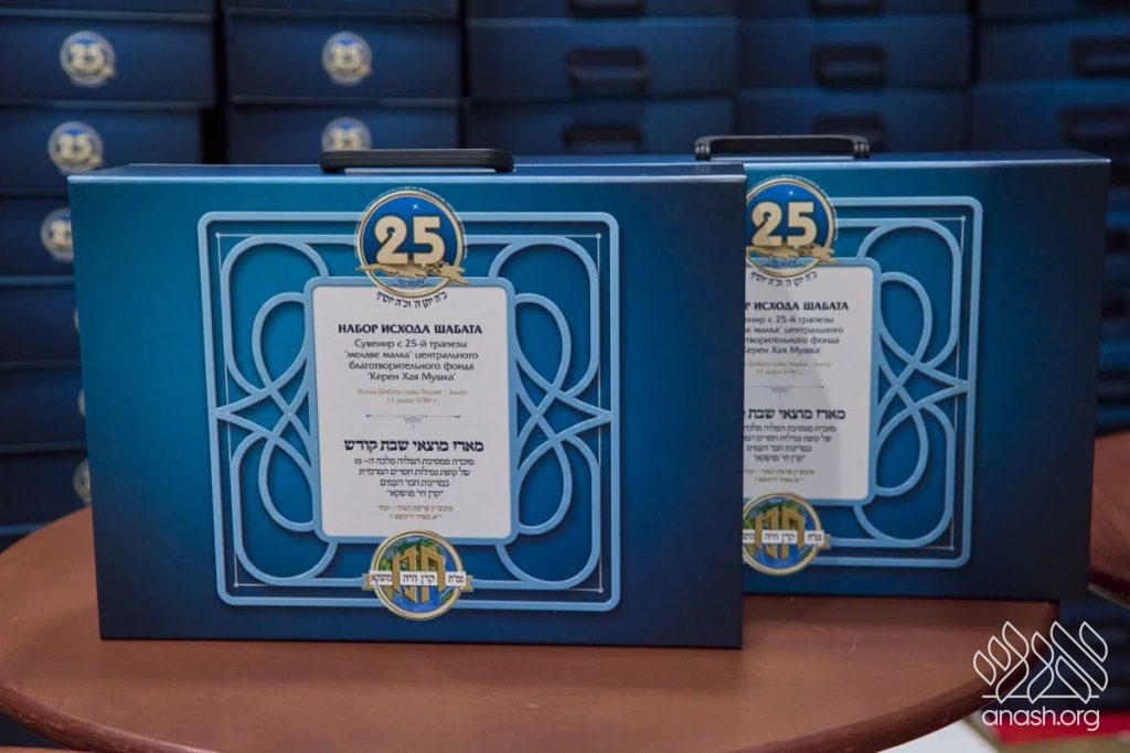 A special surprise awaited all participants as they departed at the conclusion of the festive evening: a unique and original Motzaei Shabbos set, including a tray, kiddush cup, candlestick with havdalah candle, besamim jar, two cups for the custom of hot drinks on Motzaei Shabbos, two candlesticks for lighting in honor of Motzaei Shabbos, a tzedakah box, and a booklet in Lashon HaKodesh and Russian, specially written and edited by the director of the gemach, containing detailed guidance with the tefillos, halachos, and customs for Motzaei Shabbos.
