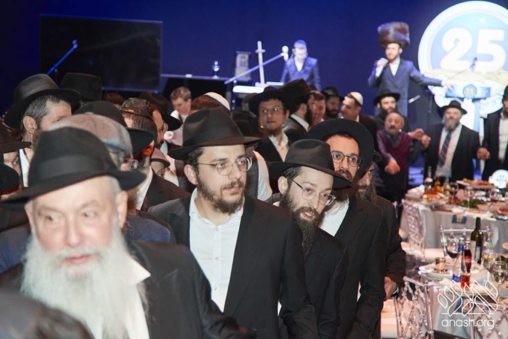 Upon hearing the good news of the elimination of the tyrant and Amalekite oppressor in Iran, the large gathering was transformed into a seudas hoda’ah. It began with the recitation of a kapitel Tehillim by a member of the gemach administration and chairman of the Ohr Avner Foundation, Rabbi Dovid Mondshine, and continued with heartfelt niggunim and songs of deveikus, leading to spirited dancing with the baal menagen and composer R’ Bentzi Stein, accompanied by keyboardist Eli Weiss. The celebration continued for a long time, until Birkas Hamazon, which was led by the Rav of the Solomon Hills community and menahel of the Moscow Yeshiva Gedolah, Rabbi Yechezkel Lazar.