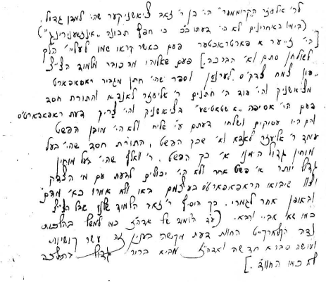 However, when I met him in Petersburg and attempted to engage him in discussions of chidushei Torah, he was no longer capable of such study, because he had completely immersed his mind and intellectual abilities in mathematics. He himself lamented that he no longer had the same capacity for deep Torah learning and had abandoned its study, but he said that he could not restrain his mind from pursuing engineering and mechanics.