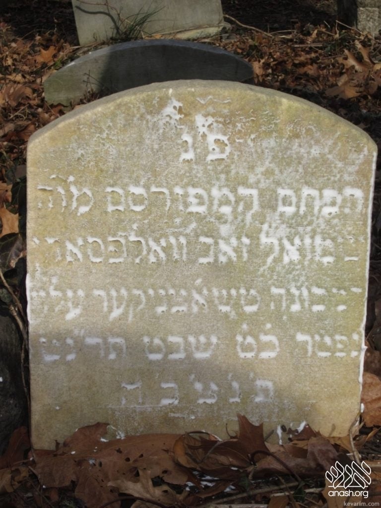 R. Volf’s death certificate in the New York City archives states that he was born in 1814 and was 85 years old at the time of his passing. It records his date of death as February 7, 1899, and states that he was buried two days later. This means that the date of passing inscribed on his matzeivah is in fact the date of burial, and his actual yahrtzeit is 27 Shevat, not 29 Shevat.
