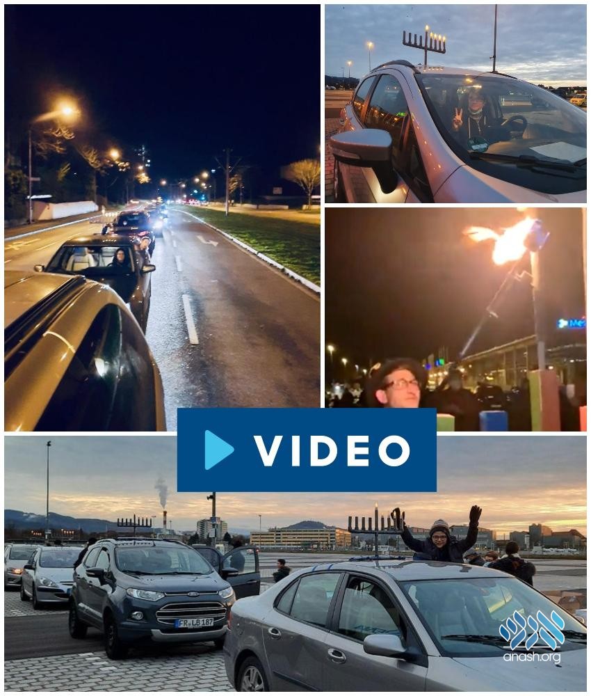 75 years after the holocaust, the first-ever car Menorah parade took place on the fourth night of Chanuka in Freiburg Germany, followed by a Menorah lighting in the city center.