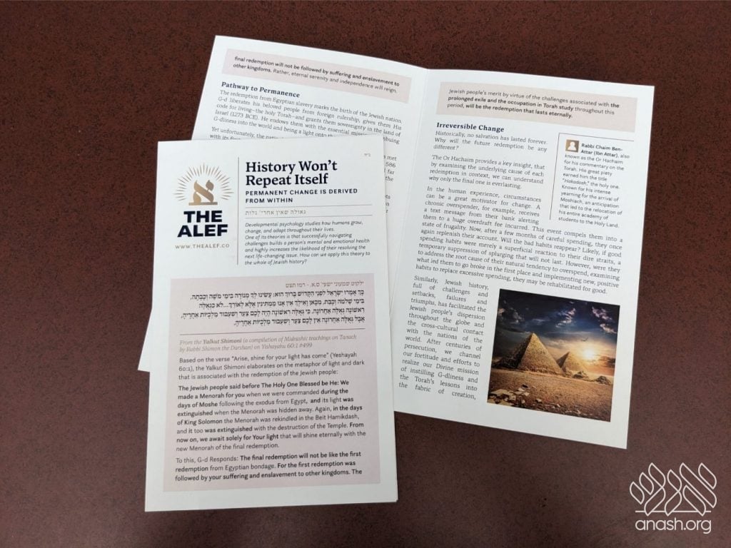 Each Alef segment is built around a core Torah text and presented as a double-sided PDF. Sources from Chassidus and Nigleh are translated and explained, offering both clarity and depth, inspired by the Rebbe’s call to prepare the world for Geulah.