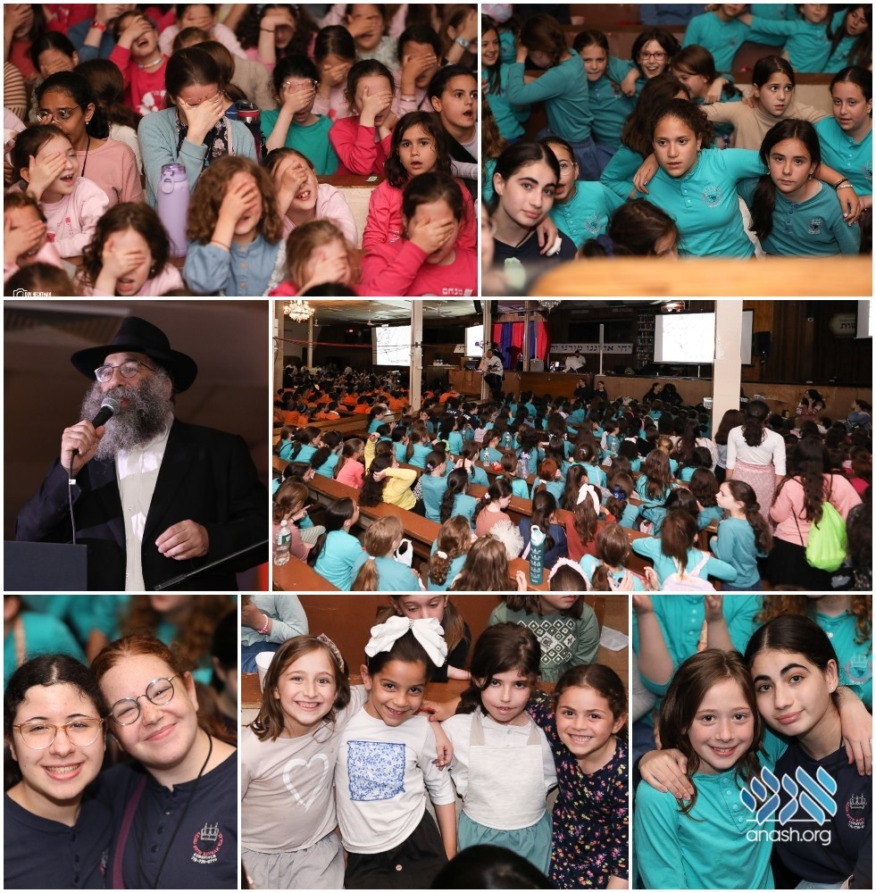 Girls from day camps in Crown Heights joined a lively rally in 770 celebrating Chag Hageulah Yud Beis Tammuz, with children in overnight camps joining via live stream.