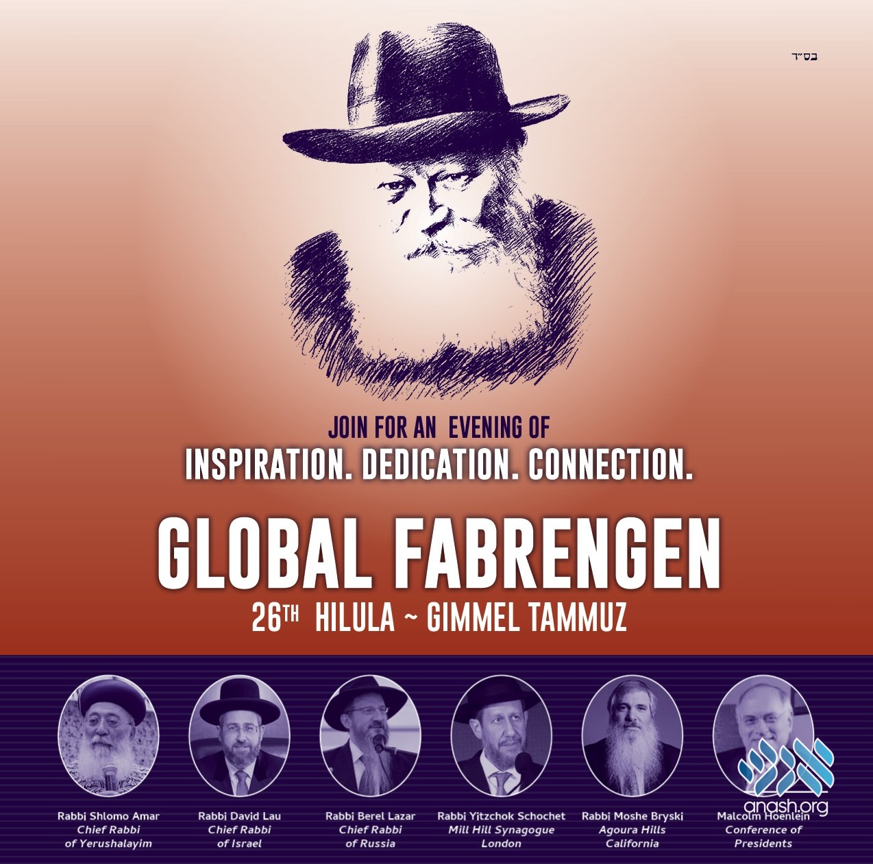 A global Gimmel Tammuz Farbrengen will take place Wednesday night and will feature addresses by the Chief Rabbis of Israel, Russia, and Yerushalayim, and other renowned speakers.