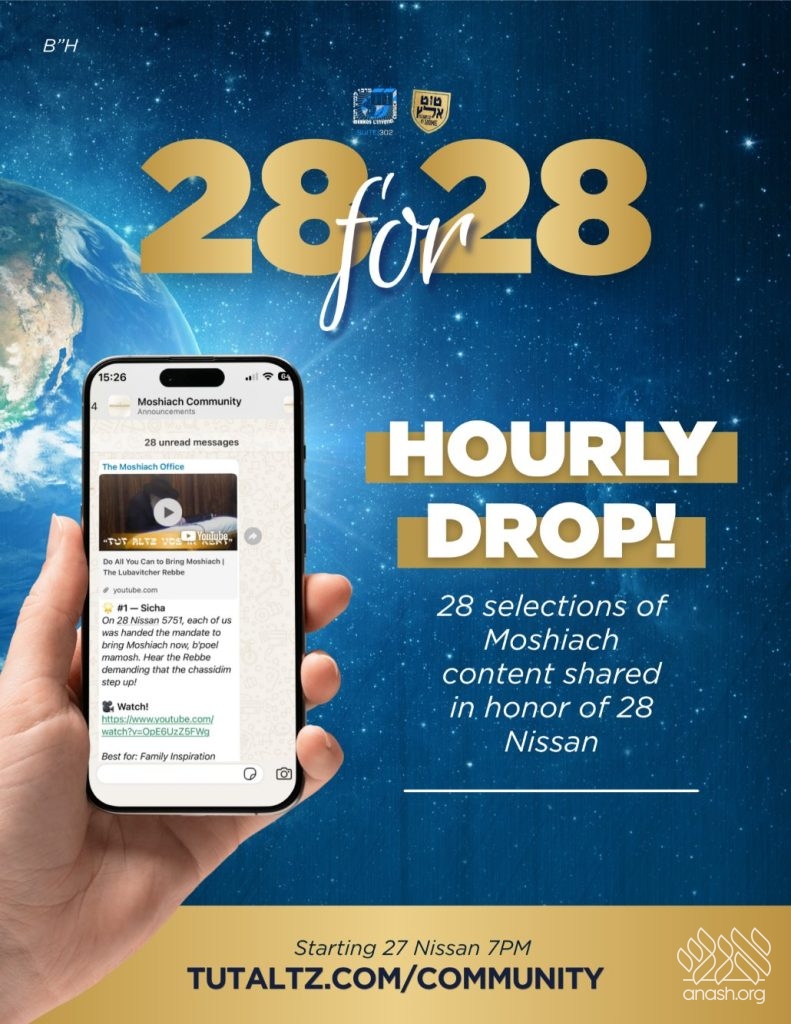 Throughout the day, the Moshiach Office at Merkos 302 will be releasing some of the most powerful and insightful content, from audio to listen to, videos to watch, games to play, segments to learn, stories to read, and lessons to teach.