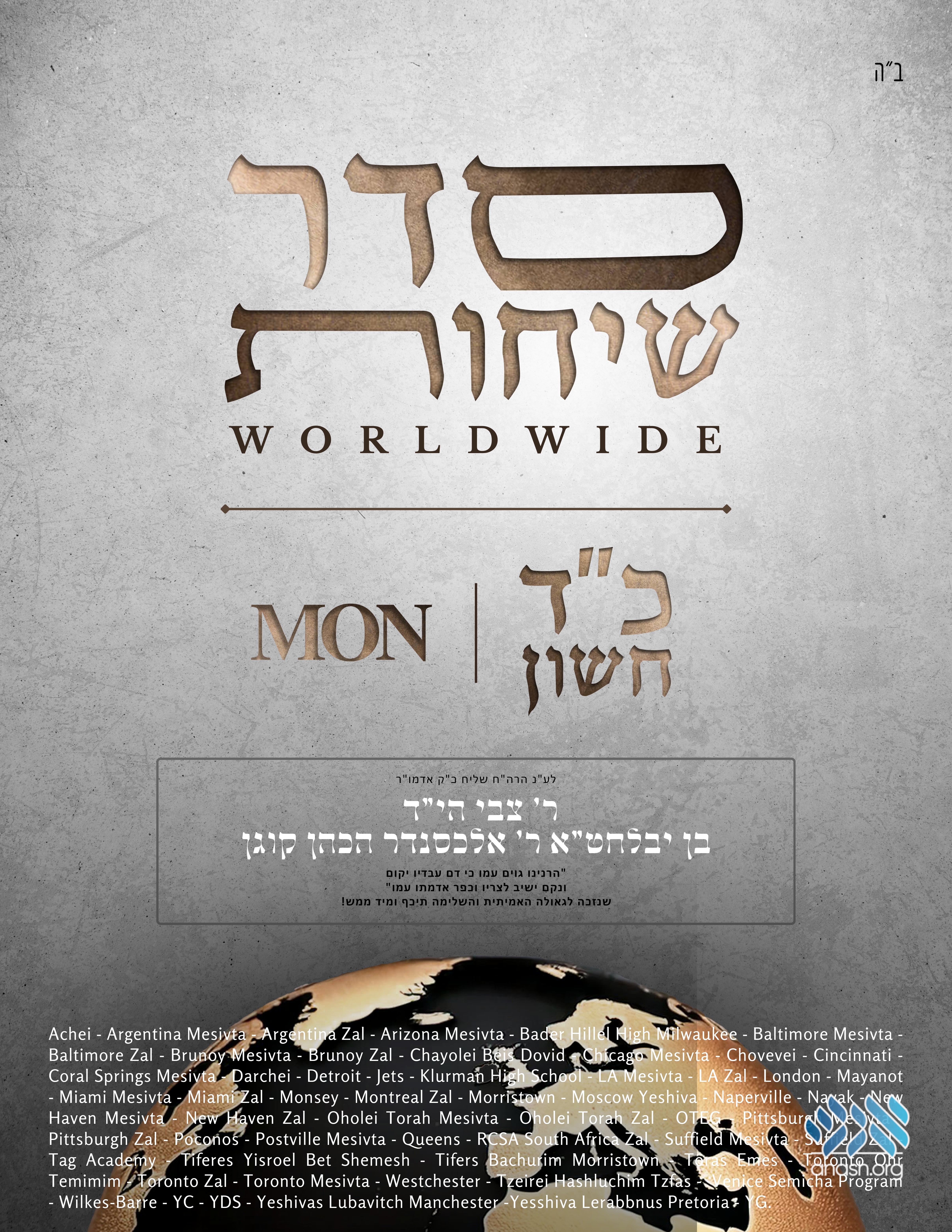Bochurim in over 60 Yeshivos across the world will join Monday evening for a special seder Sichos in memory of Rabbi Zvi Hacohen Kogen HY”D, who lost his life Al Kidush Hashem.