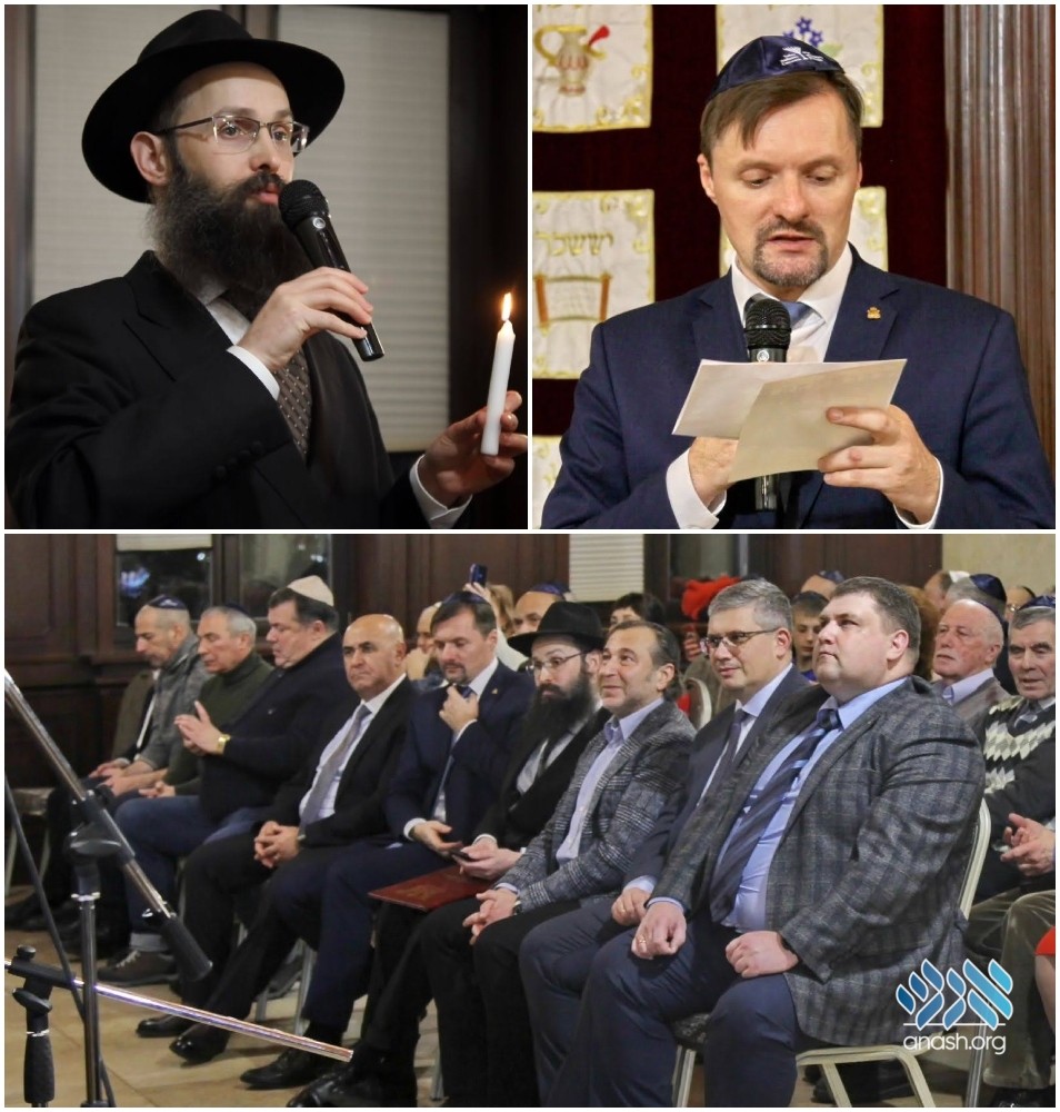 The mayor, deputy mayor and representatives of the local and district government all participated in the ceremony of lighting the first candle of Chanukah which took place in the Jewish community center of Smolensk, led by the local shliach and chief Rabbi of the city, Rabbi Levi Yitzchok Mondshine.