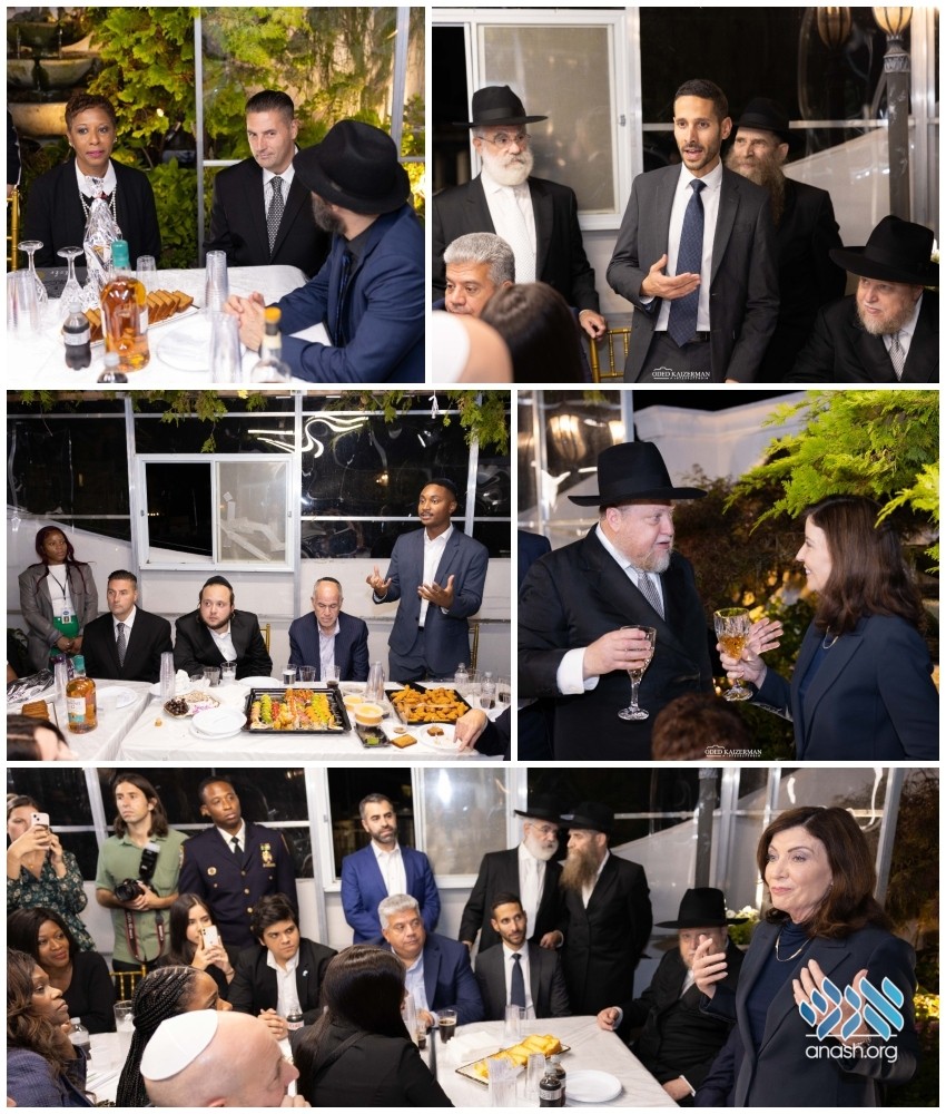 Governor Kathy Hochul, AG Tish James, City Council Speaker Adrienne Adams, and other elected officials from New York State joined the annual Sukkos celebration hosted in Crown Heights by activist Rabbi Chanina Sperlin on Tuesday night.