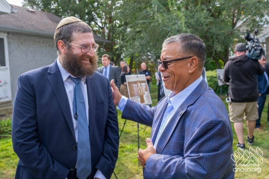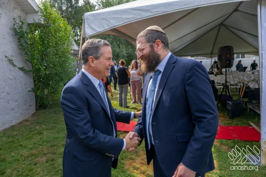 The ceremony, led by shliach Rabbi Hersh Loschak, featured speeches from Glassboro’s mayor John E. Wallace, U.S. Representative Donald Norcross, State Senator John J. Burzichelli, and Rowan University President Ali A. Houshmand, among others.