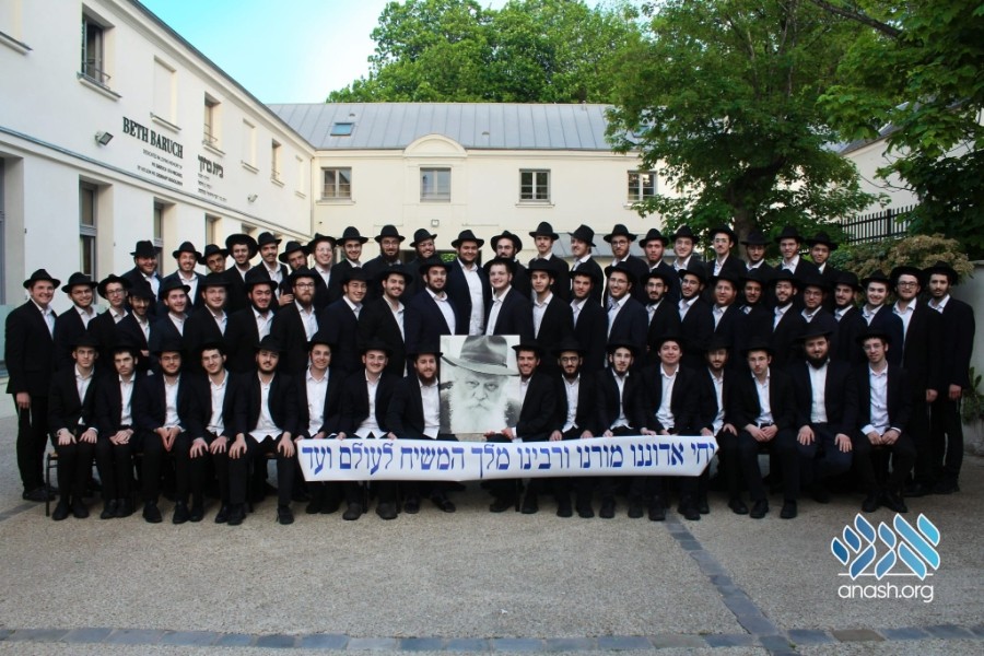 The bochurim of Shiur Gimmel of Yeshivas Tomchei Tmimim Brunoy, France, joined together for a group photo as they concluded their second year of Yeshiva and prepare to learn in Oholei Torah this upcoming year.