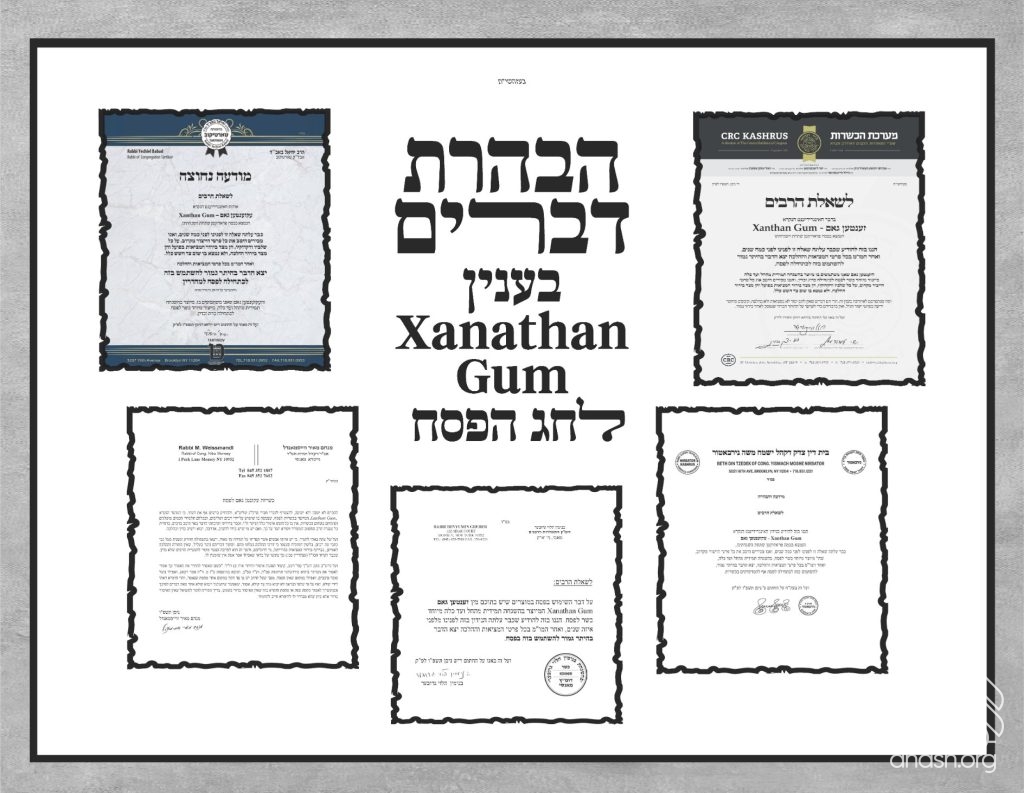 For years, Rabbi Nuchem Efraim Teitelbaum of Vaalov Kashrus in Brooklyn was the authority who certified xanthan gum as kosher for Pesach. Several years ago, he stopped issuing that certification for production-related technical reasons. Yet many hashgachos have continued certifying products that use xanthan gum as an ingredient, despite the fact that the specific kosher-for-Pesach xanthan gum certification they had relied on no longer exists.