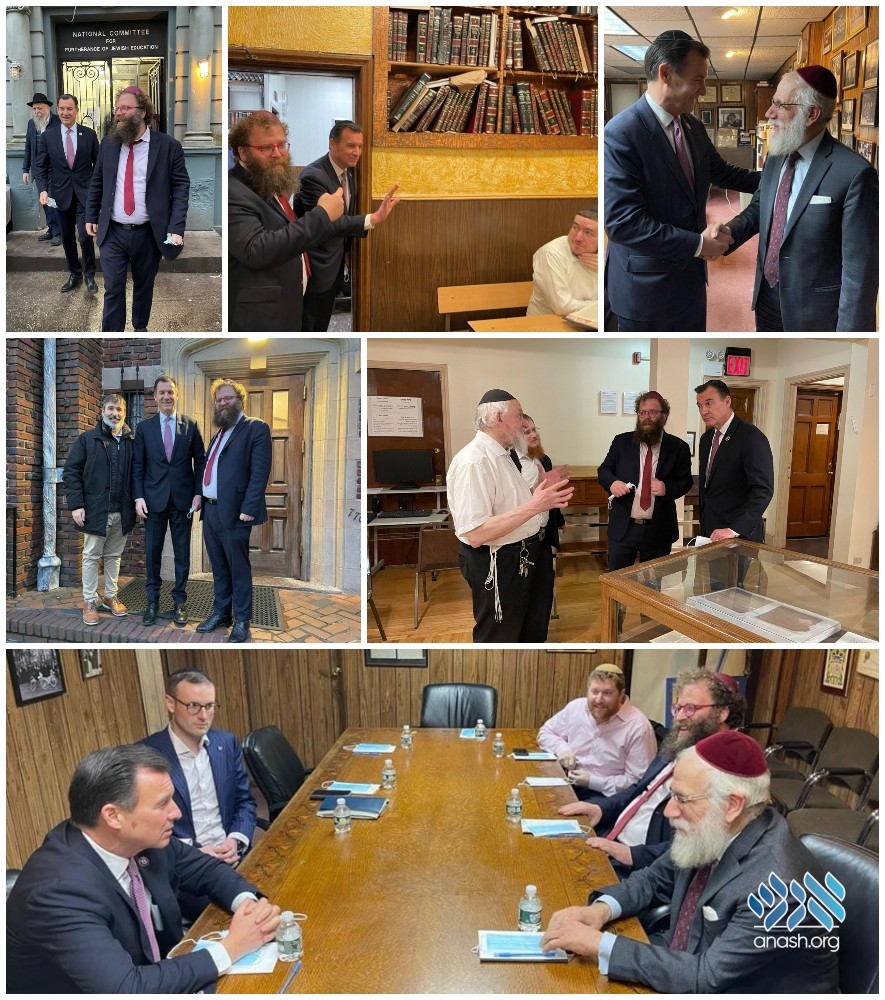 At a meeting held at the offices of the National Committee for the Furtherance of Jewish Education (NCFJE), Suozzi heard about the concerns of the Crown Heights Jewish community particularly in the area of Yeshiva education and public safety.