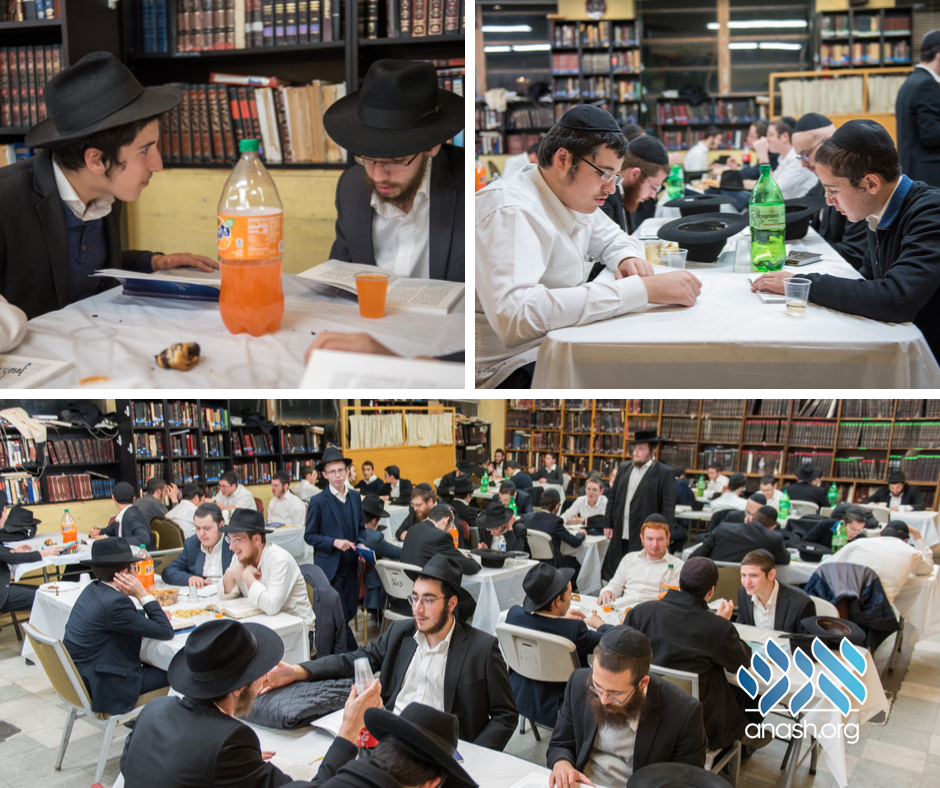 The seder took place in the Kollel on Union Street, and had the Bochurim delving deeply into the Rebbe’s sichos on the Yomtov of Sukkos and the Daled Minim.
