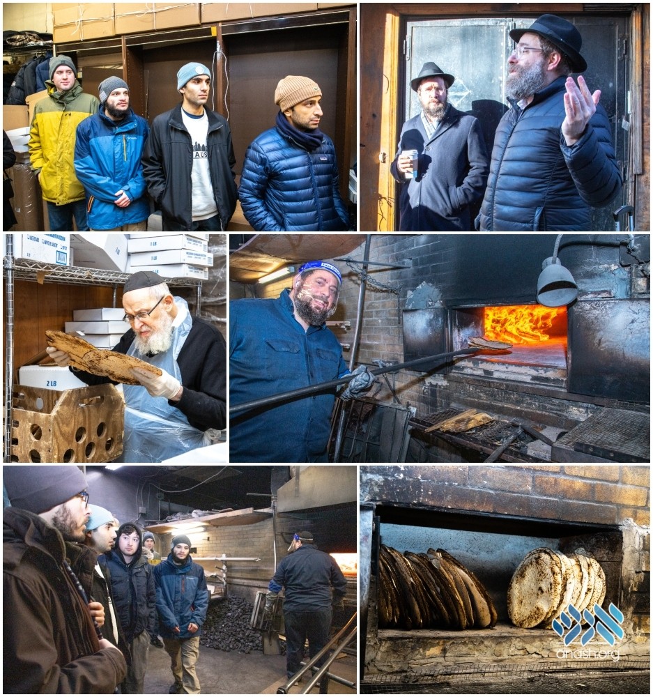 Even as the calendar shows the month of Teves, the Crown Heights Matza Bakery is working full-time to produce matzos for the upcoming Pesach. Groups toured the bakery on Sunday as part of the CYP Shabbaton program.