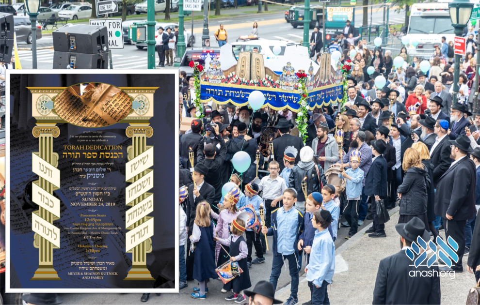 The hachnosas sefer torah will begin with the procession at the corner of Kingston Ave. and Montgomery St. on Sunday at 12:45 P.M. From there it will head to Reinitz Shul in Oholei Torah Mesivta at 417 Troy Ave.