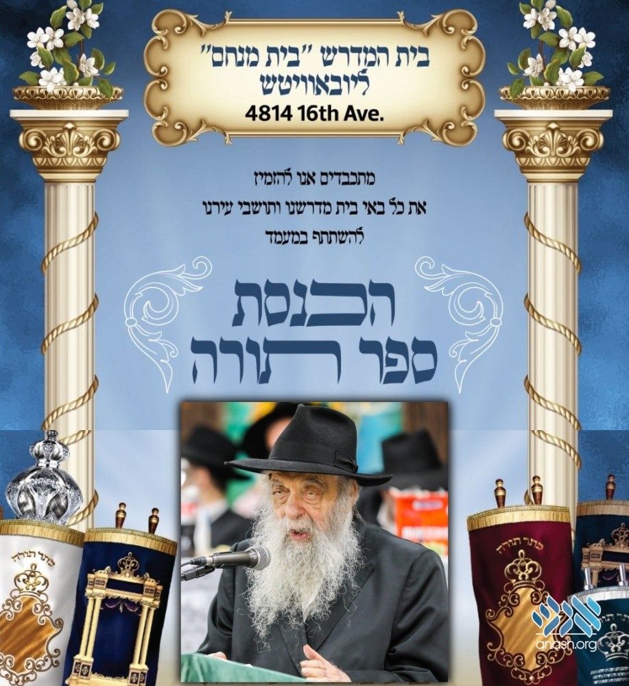 The Torah will leave from the Boro Park home of Rabbi Leibel Altein, the mashpia of Beis Menachem and head of Heichal Menachem, at 1572 52nd St.. and be accompanied by a procession and lively music to Beis Menachem at 4814 16th Ave.