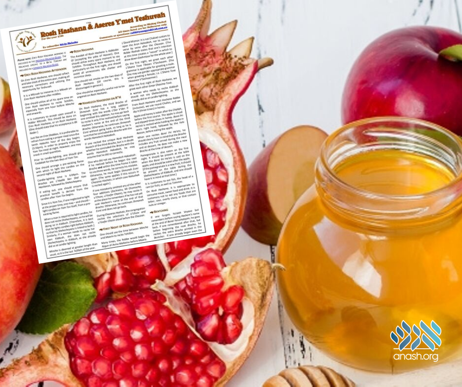 The following is a Halach guide for Rosh Hashana compiled by Rabbi Shmuel Lesches, Rov of Young Yeshivah Shul in Melbourne, Australia. Click here to download a PDF version.