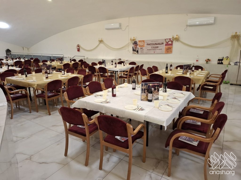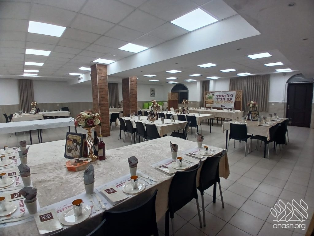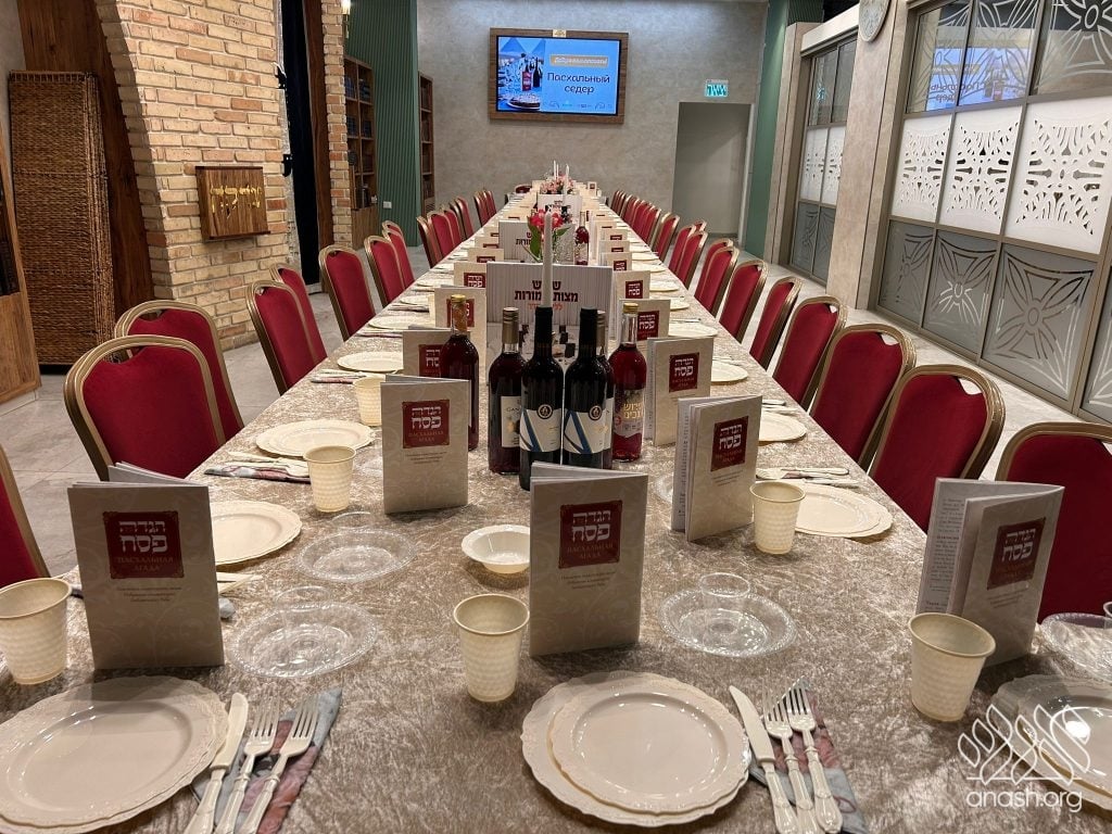 In addition to the matzah distribution, thousands of public sedarim were held across the country. To make all 1,300 sedarim possible, enormous quantities of food were prepared: approximately 15 tons of meat and more than 10 tons of matzah, along with approximately 6 tons of gefilte fish, more than a ton and a half of chrain for maror, close to 3 tons of charoses, and approximately 4 tons of potatoes and vegetables for karpas.
