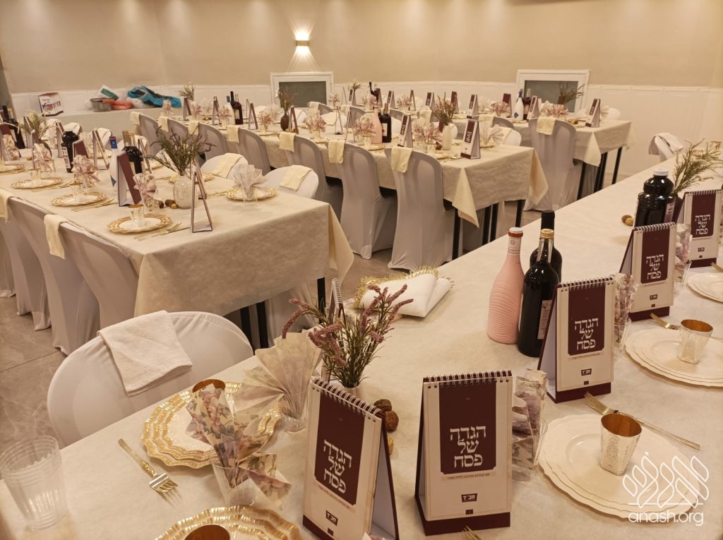 Half a million shmurah matzah kits were distributed across Eretz Yisrael; special sedarim were held in underground shelters at hospitals, at IDF bases, and for families of terror victims; and 2,000 shluchim and activists led the largest logistical operation in the history of Chabad in Eretz Yisrael.