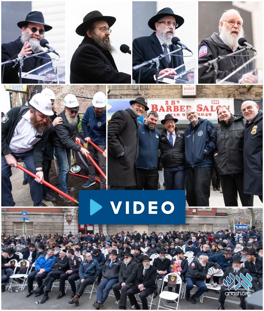 The event kicked off with footage from the groundbreaking that took place some thirty-plus years ago, when the Rebbe personally participated in placing the cornerstone for the expansion of 770. A unique, physical link connected that pivotal moment to this one, as one of the shovels from the 770 groundbreaking was present at this Hatzalah groundbreaking.