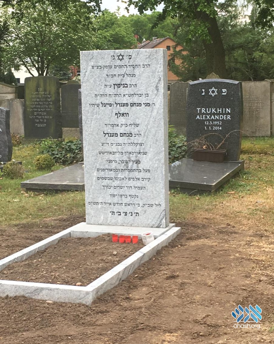 At the conclusion of Shiva for Shliach Rabbi Binyomin Wolff, family members, fellow shluchim and mekuravim, went today to his kever in Hanover, Germany, to erect the matzeivah.