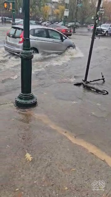 New York City Emergency Management warned residents to stay indoors and avoid flooded streets. “Heavy rain of one to two inches will cause flooding of low-lying and poor drainage areas,” the agency said. “Do not drive or walk where water covers the roadway. If you are in a basement, move to a higher floor.”