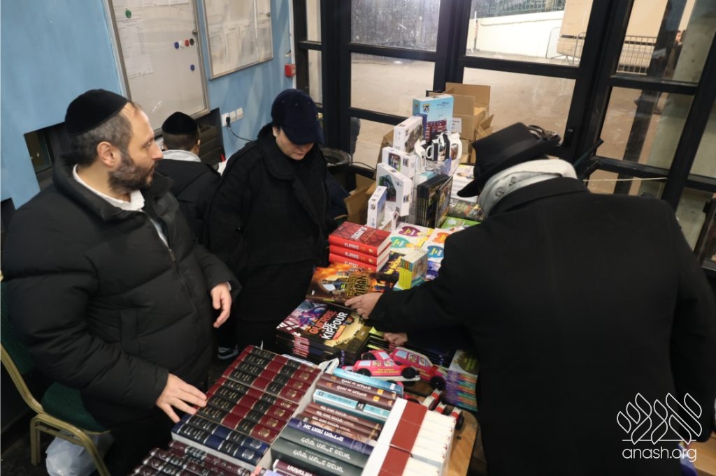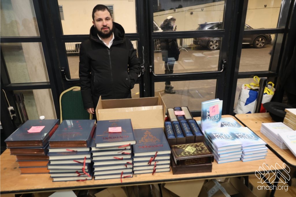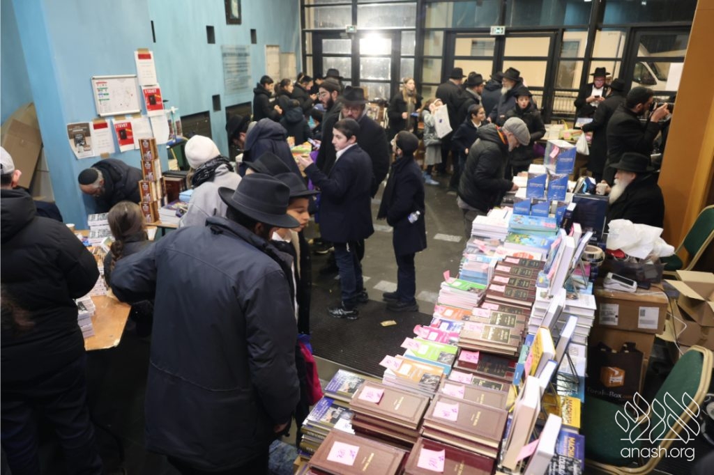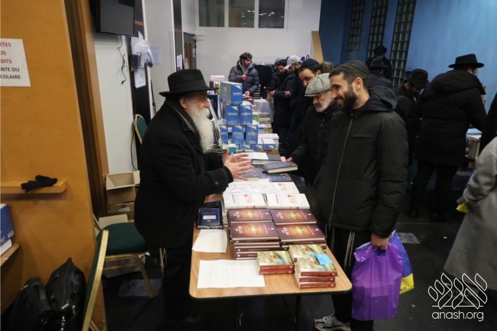 A central farbrengen marking Hei Teves was held at Beis Chaya Mushka in Paris, France, with Rabbi Mendel Azimov and Rabbi Elchanan Morosov. The event also featured a large seforim sale.