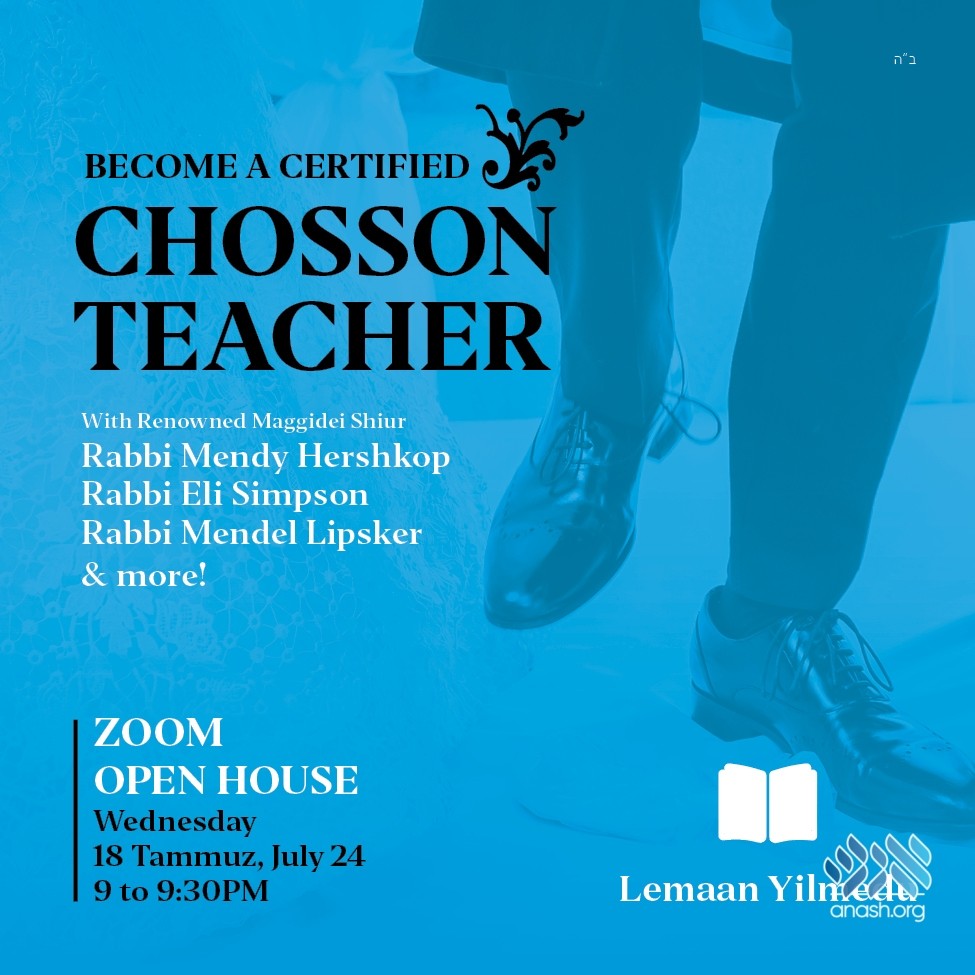 A Chosson teacher plays a crucial role in setting the tone for a new marriage. You can make a real difference in the future of a family!