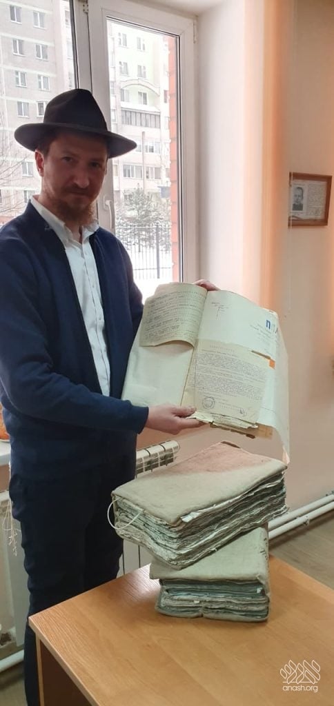 The discovery was made in the Smolensk regional archive, where Rabbi Gordon continues his work preserving and documenting the history of the holy sites of Lubavitch.