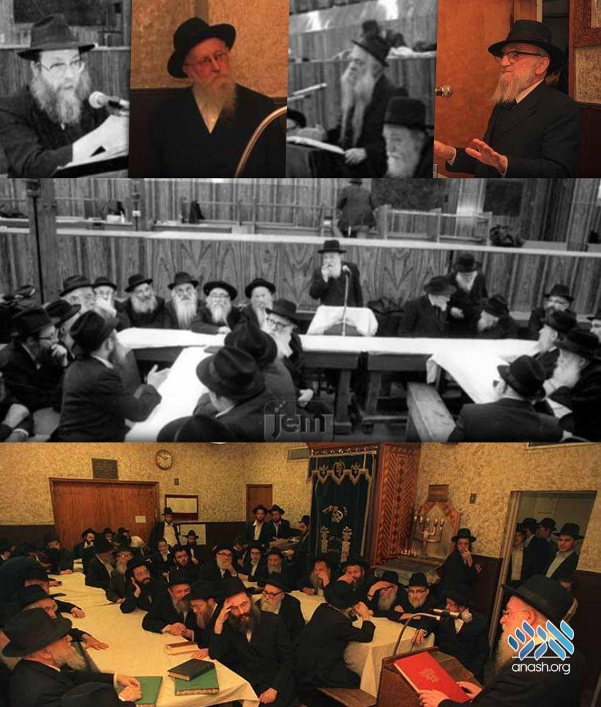 Beginning in 5718, with the Rebbe’s encouragement, Rabbi Mordechai Mentlik, the rosh yeshiva of 770, initiated a kinus Torah, a gathering where roshei yeshivos, rabbonim, and others would deliver pilpulim and hold discussions in Torah. The kinus was held in the upstairs zal of 770, on the day after Shavuos (when we receive the Torah), as well as the day after Simchas Torah (when we complete the Torah and begin it anew).