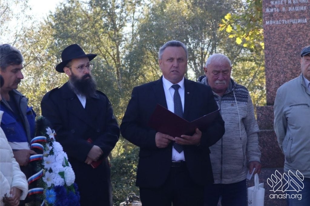 The Jewish community and local authorities in Monastyrshchina marked the completion of reconstruction work on the Holocaust memorial site with a ceremony and kaddish led by shliach and Chief Rabbi of the Smolensk region, Rabbi Levi Mondshine.