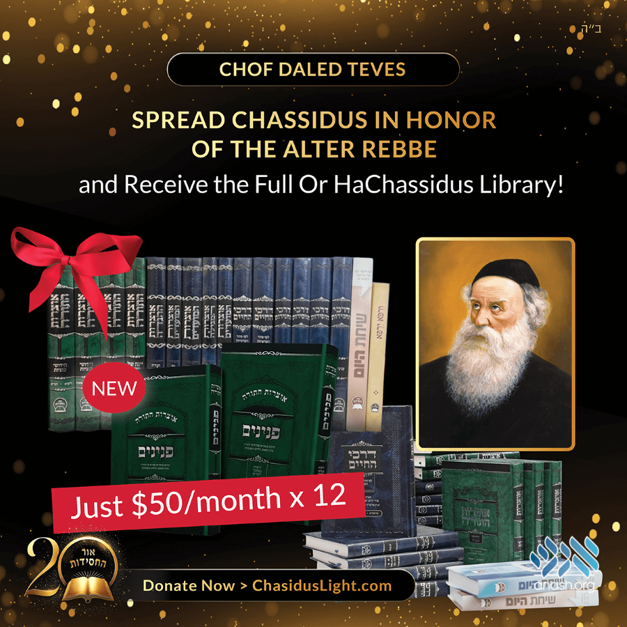 Or Hachassidus is concluding its 20th-anniversary campaign, working tirelessly to spread the light of Chassidus to communities far and wide. Your donation today will help them expand their efforts, bringing the teachings of the Alter Rebbe and the Rebbe to even more people.