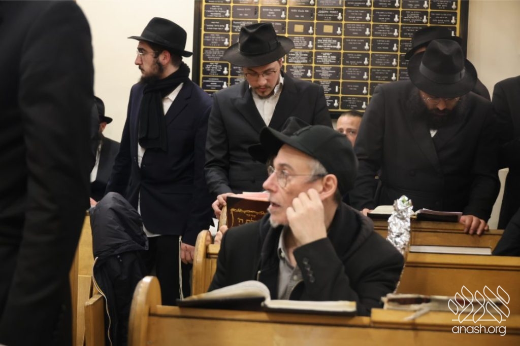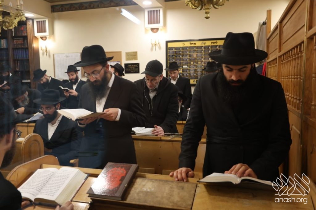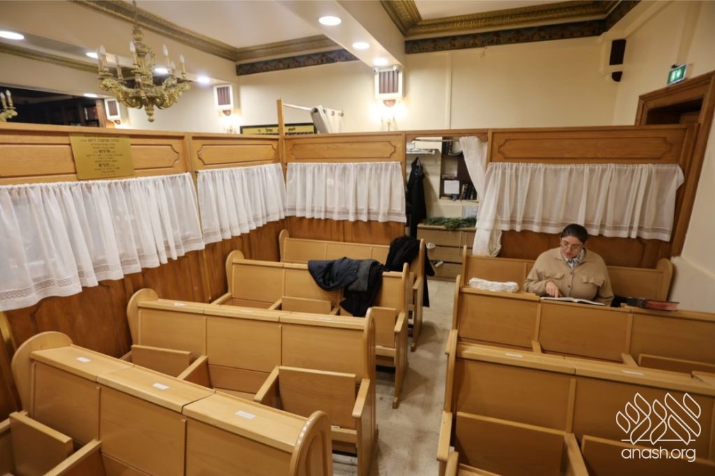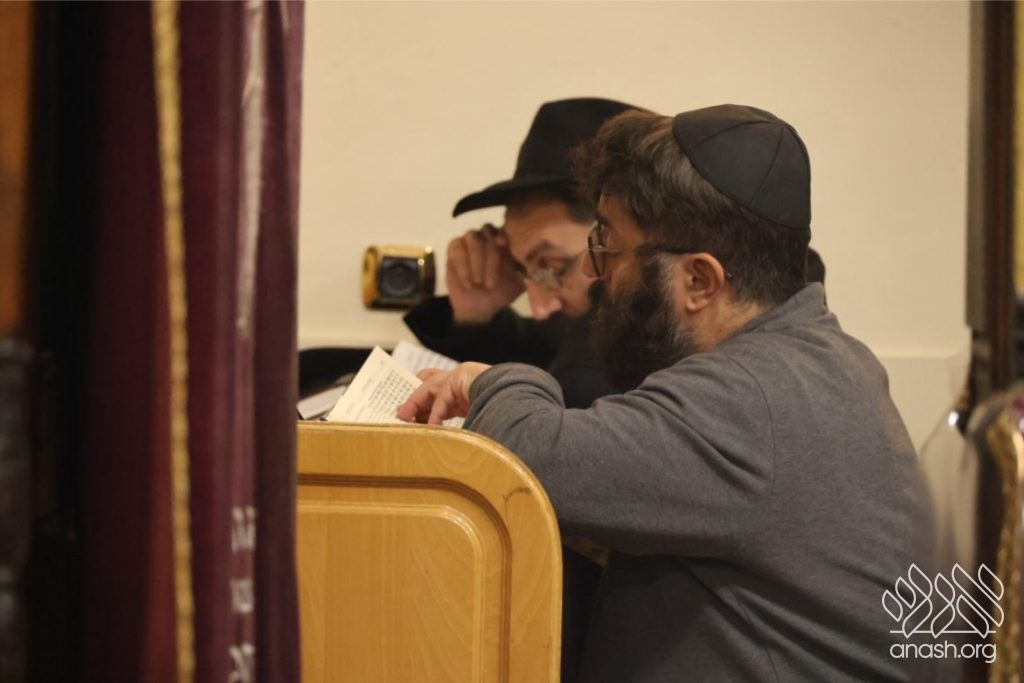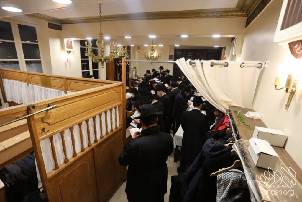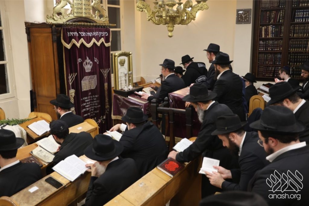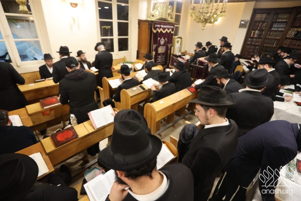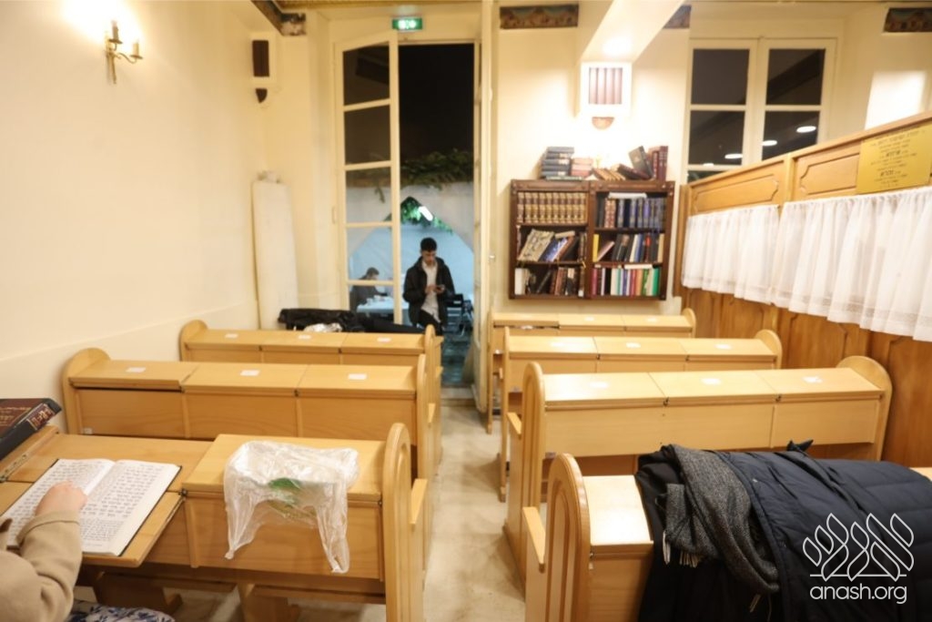 Chassidim gathered at midnight on Hoshana Raba in the Rebbe’s Shul in Paris to read the entire Tehillim. Photographer Mordechai Lubecki was there.