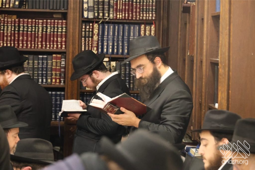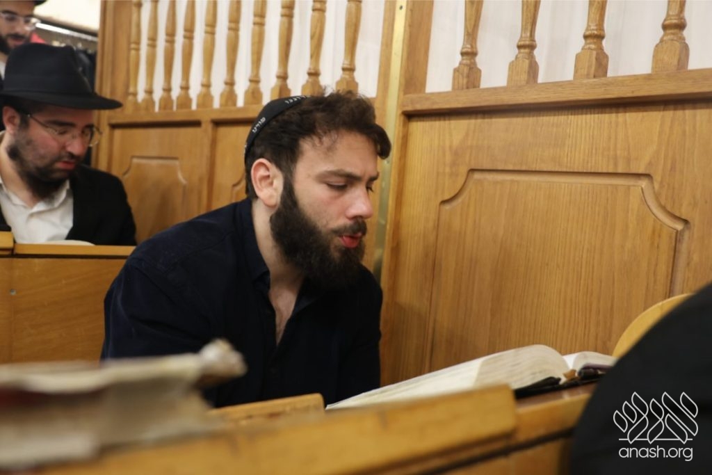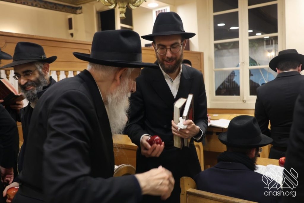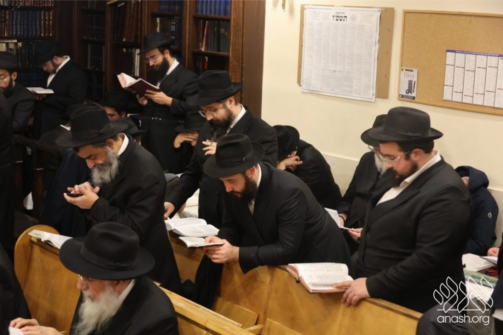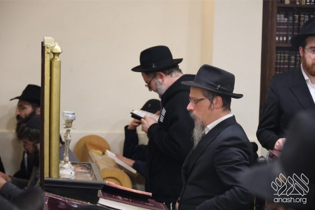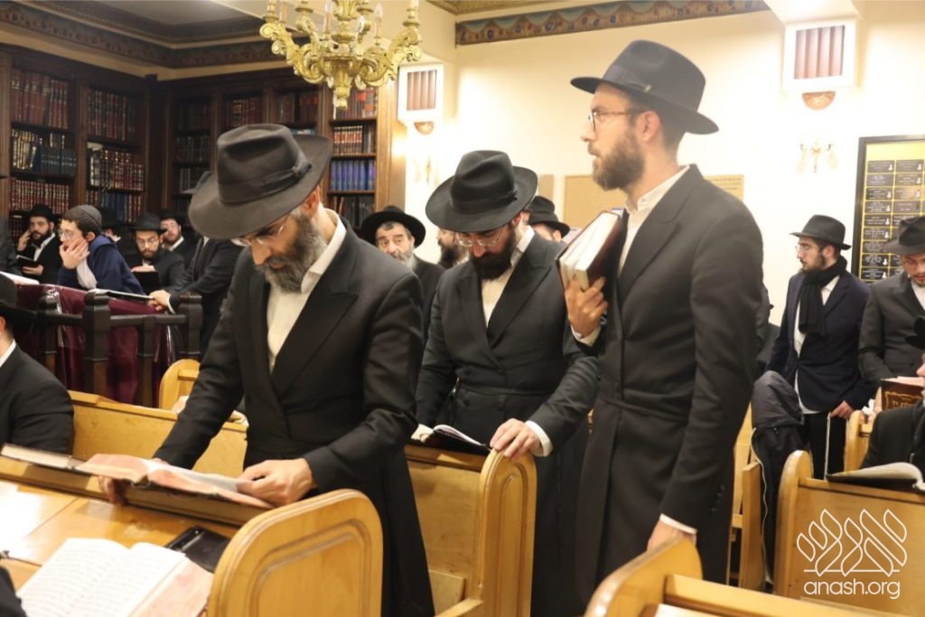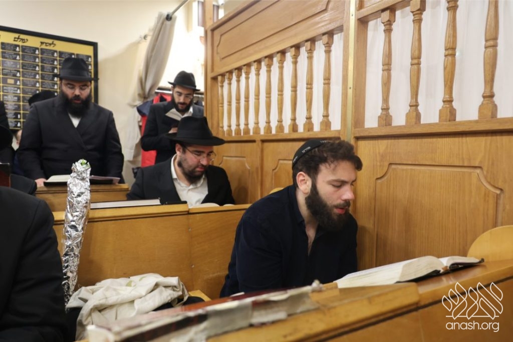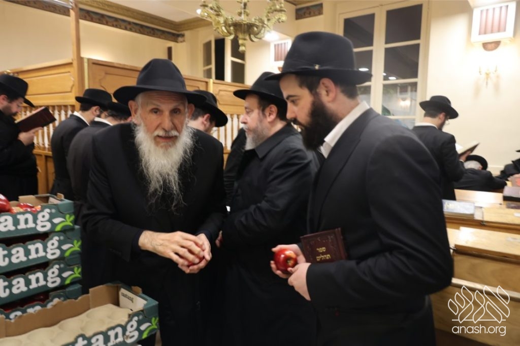Chassidim gathered at midnight on Hoshana Raba in the Rebbe’s Shul in Paris to read the entire Tehillim. Photographer Mordechai Lubecki was there.