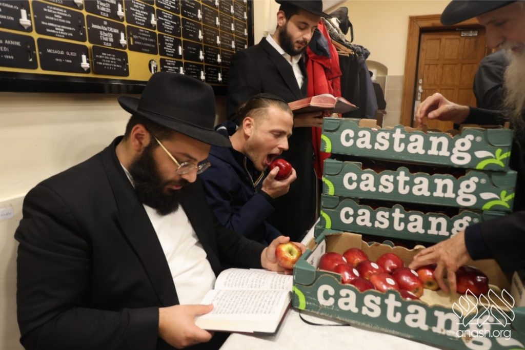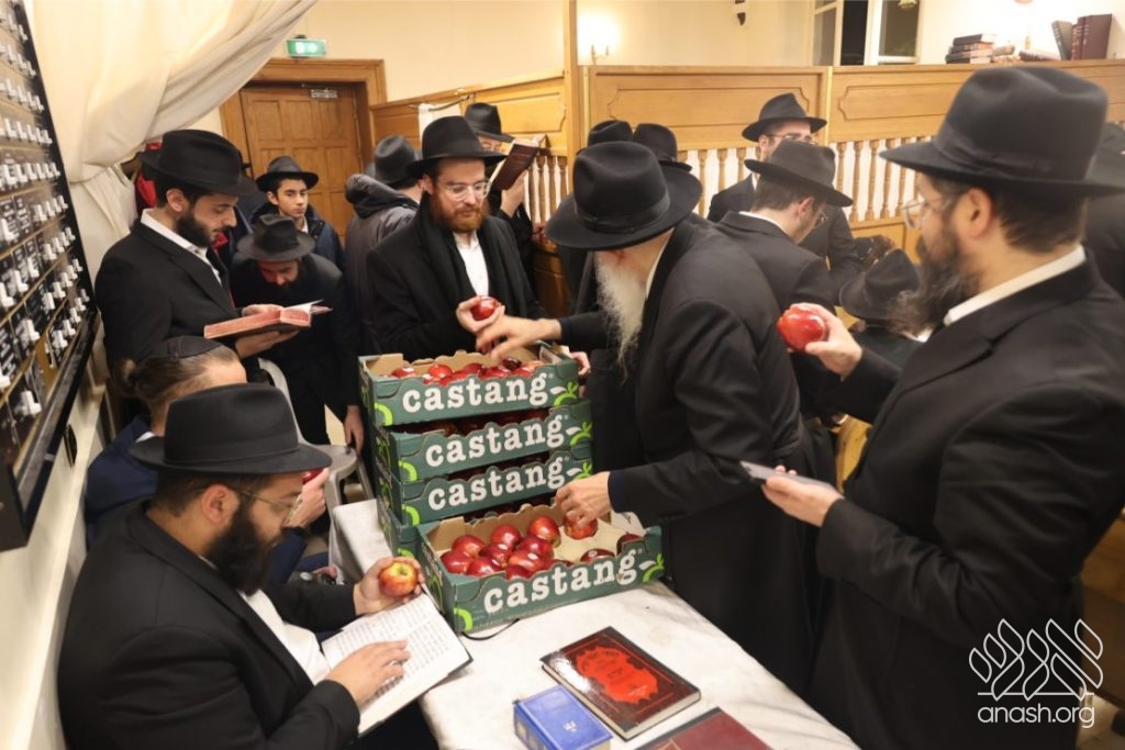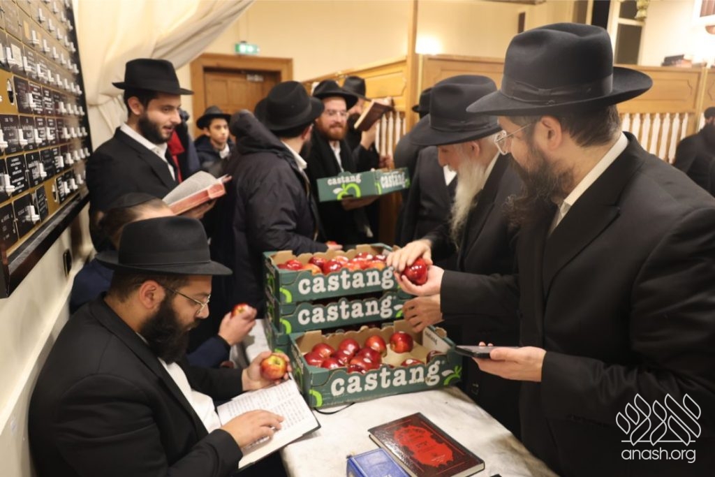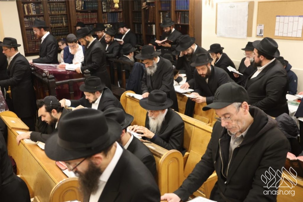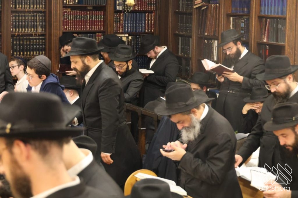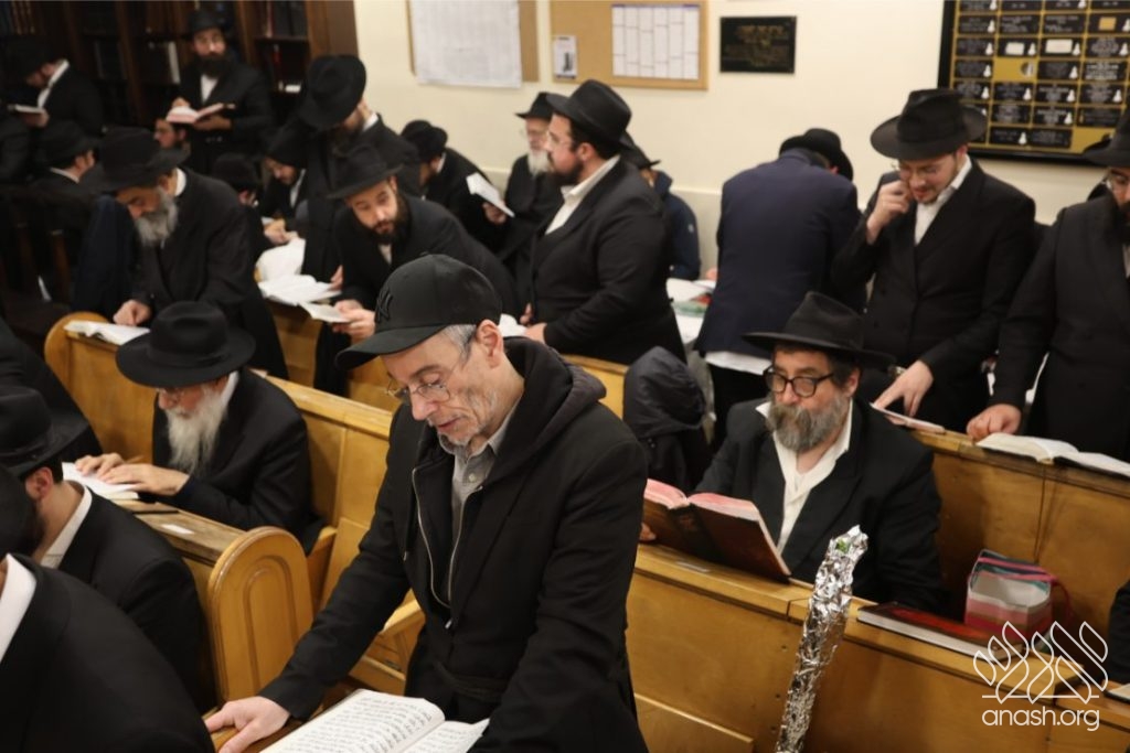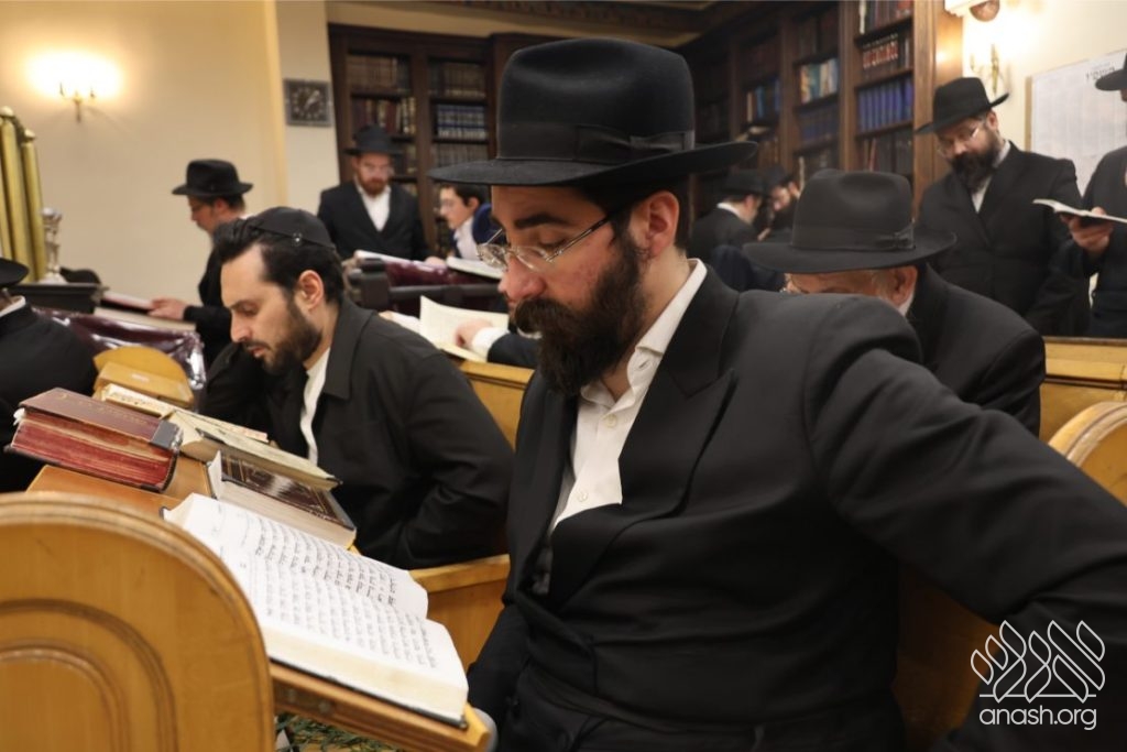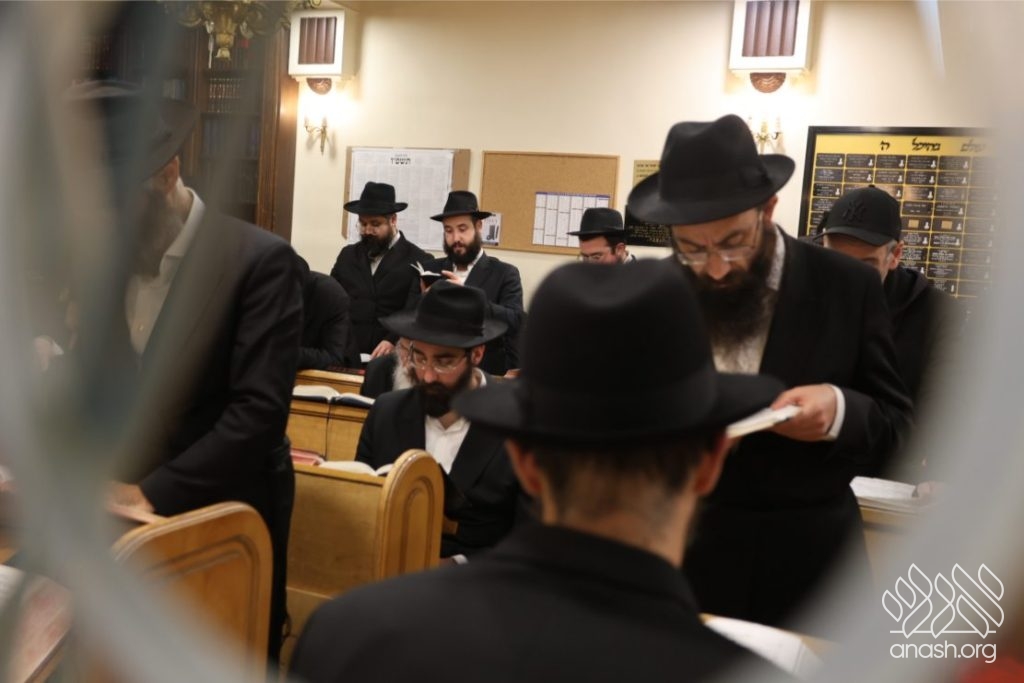 Chassidim gathered at midnight on Hoshana Raba in the Rebbe’s Shul in Paris to read the entire Tehillim. Photographer Mordechai Lubecki was there.